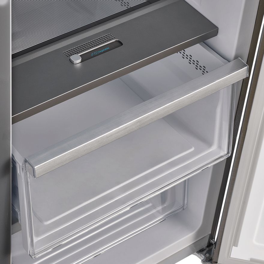 Управление холодильником осуществляется электронно, при помощи сенсорных переключателей. На дисплее отображается текущая температура и другие важные параметры. В случае открытия двери или повышения температуры в морозильном отделении, звуковая сигнализация оповестит пользователя об этом. Кроме того, модель оборудована блокировкой от детей, что делает ее использование безопасным в семьях с маленькими детьми.