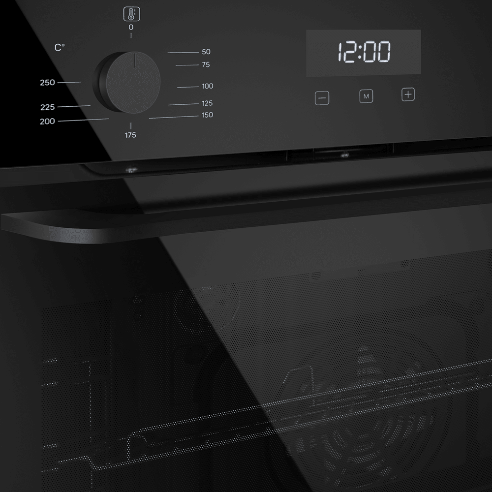 Комбинированное управление — сенсорный дисплей и утапливаемые ручки PUSH PULL — делает настройку режима и температуры интуитивной и безопасной. Диапазон 50°–250°C покрывает ежедневные задачи: от деликатной выпечки до запекания с корочкой.