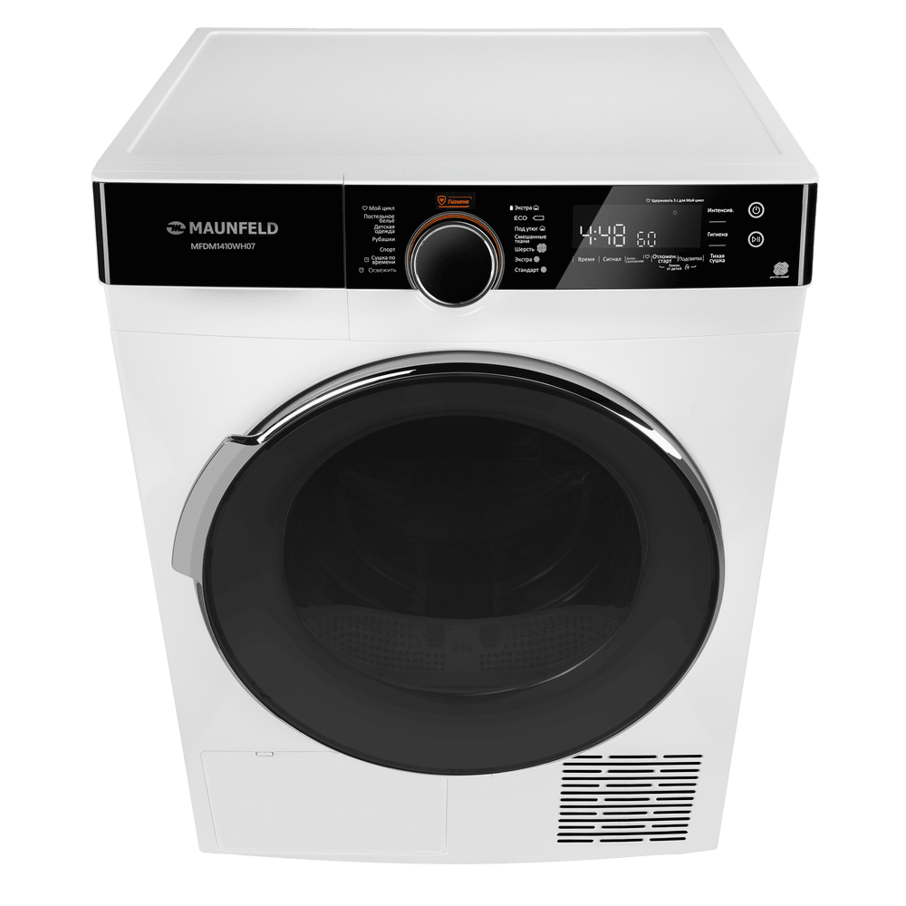 Сушильная машина с инвертором и тепловым насосом MAUNFELD MFDM1410WH07 создана для бережной и эффективной сушки большого объёма белья. Технология Heat Pump направляет тёплый сухой воздух в камеру, мягко удаляя влагу из тканей и возвращая его через испаритель без необходимости дополнительного вентиляционного канала. Съёмный резервуар для конденсата позволяет разместить технику там, где вам удобно, без привязки к стационарному сливу.
